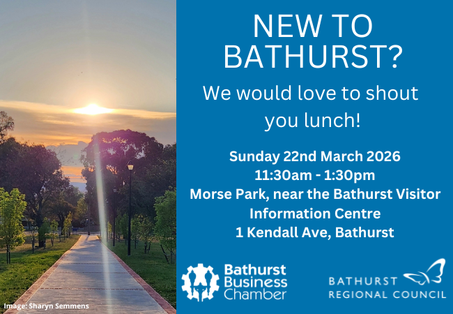 Welcome to Bathurst Lunch March 2026 New resident to Bathurst? Come along to our Welcome to Bathurst Lunch! To help you settle in we'd love to shout you lunch and introduce ourselves. Anyone new to Bathurst over the past two years is welcome to join us. There is a free gift provided to each new…